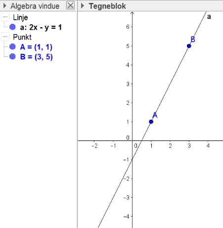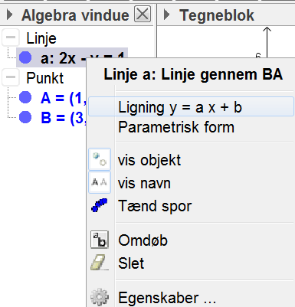Når "Ligning y=ax+b" vælges, ændres forskriften