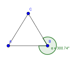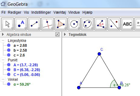 Man måler en vinkelstørrelse med knappen ”vinkel”. Herefter trykker man på de to vinkelben.