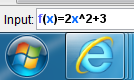 Funktionsforskriften skrives ind på samme måde som den lineære funktion, men for at opløfte x i anden potens skal man bruge ^