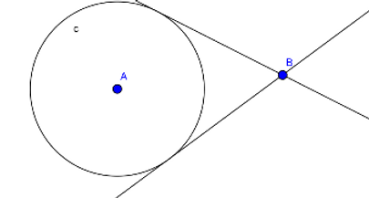 Med knappen ”tangenter” kan man tegne dem. Man starter med at indsætte et punkt uden for cirklen, som tangenten skal gå gennem.